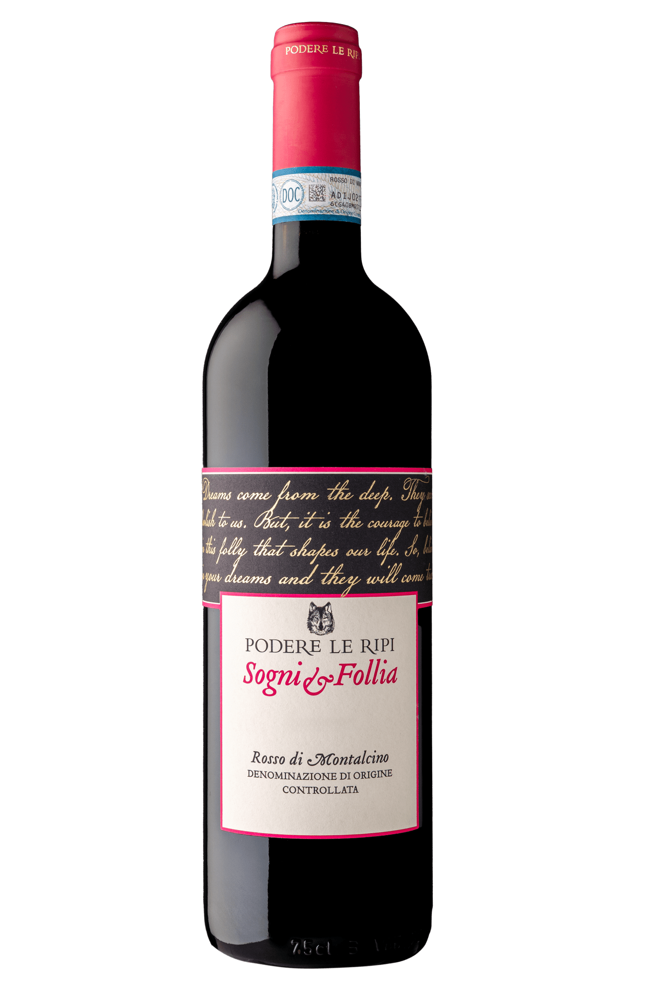A deep ruby red that expresses its aromas with a symphony of fragrances, ranging from red fruits like cherries and strawberries, to floral notes like violets with a light spicy note. As a Rosso di Montalcino, this wine is structured and well-defined, and on the palate it is wide and soft with a beautiful persistence.